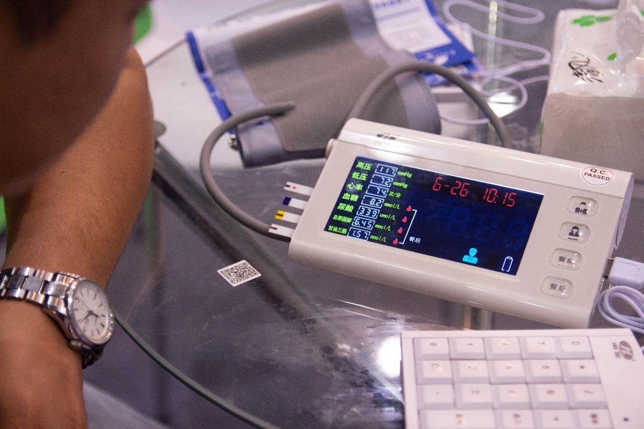 只需一滴微量的指尖血,就可以快速检测血压、心率、血糖、甘油三酯、总胆固醇、尿酸六项慢病指标数据。